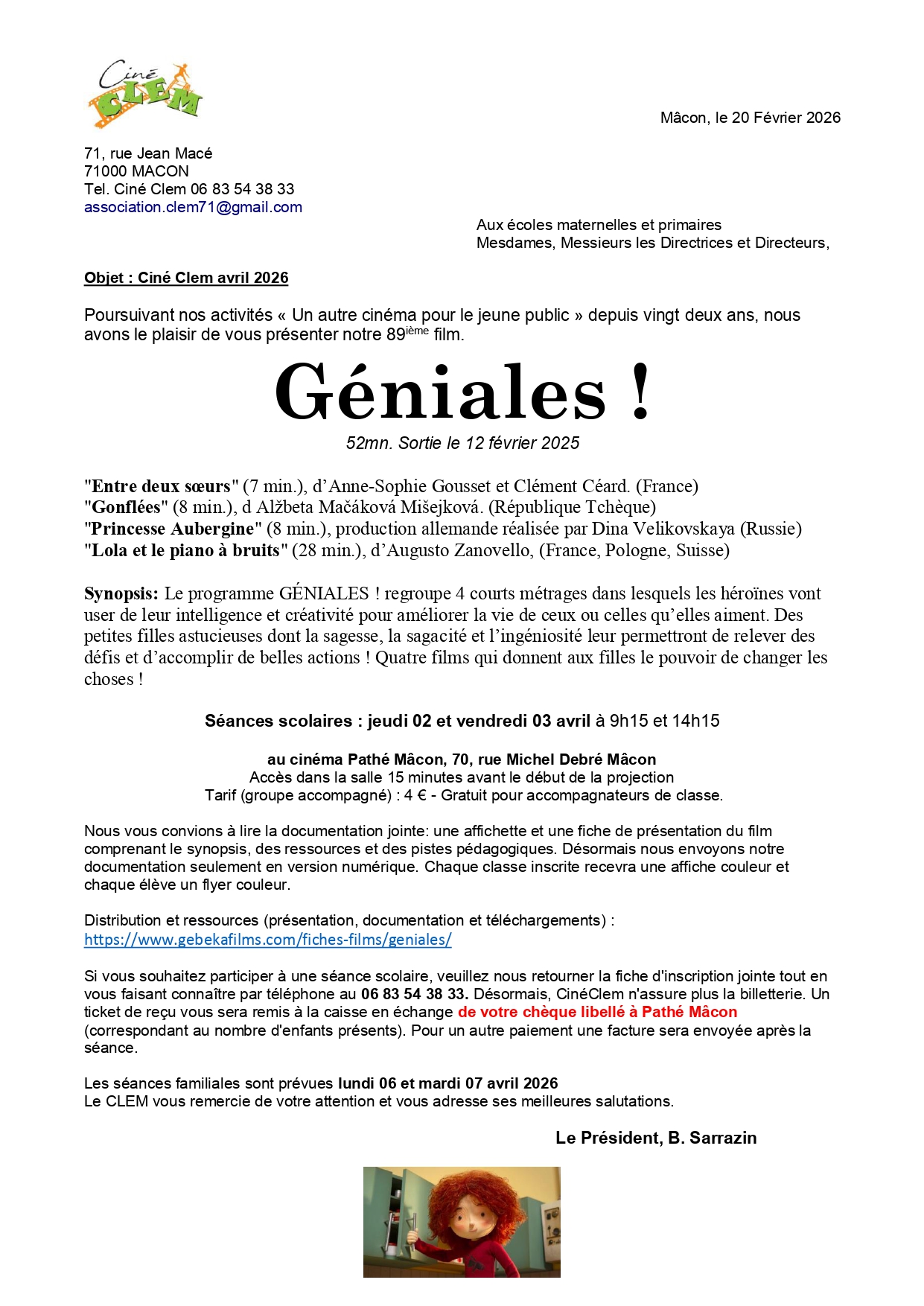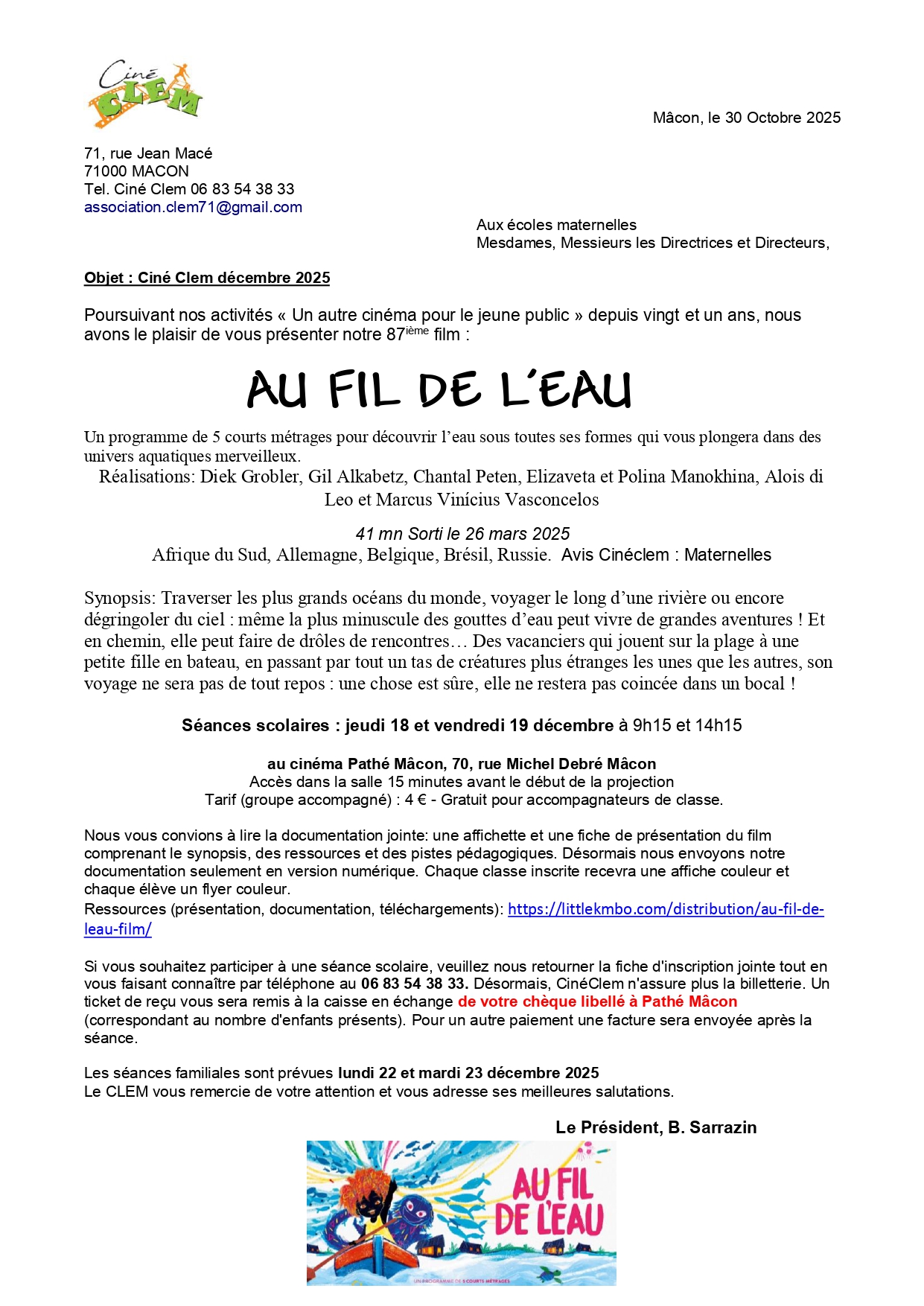 Projections de séances cinématographiques éducatives, documentées, destinées aux écoles et aux familles (4 projections par an)