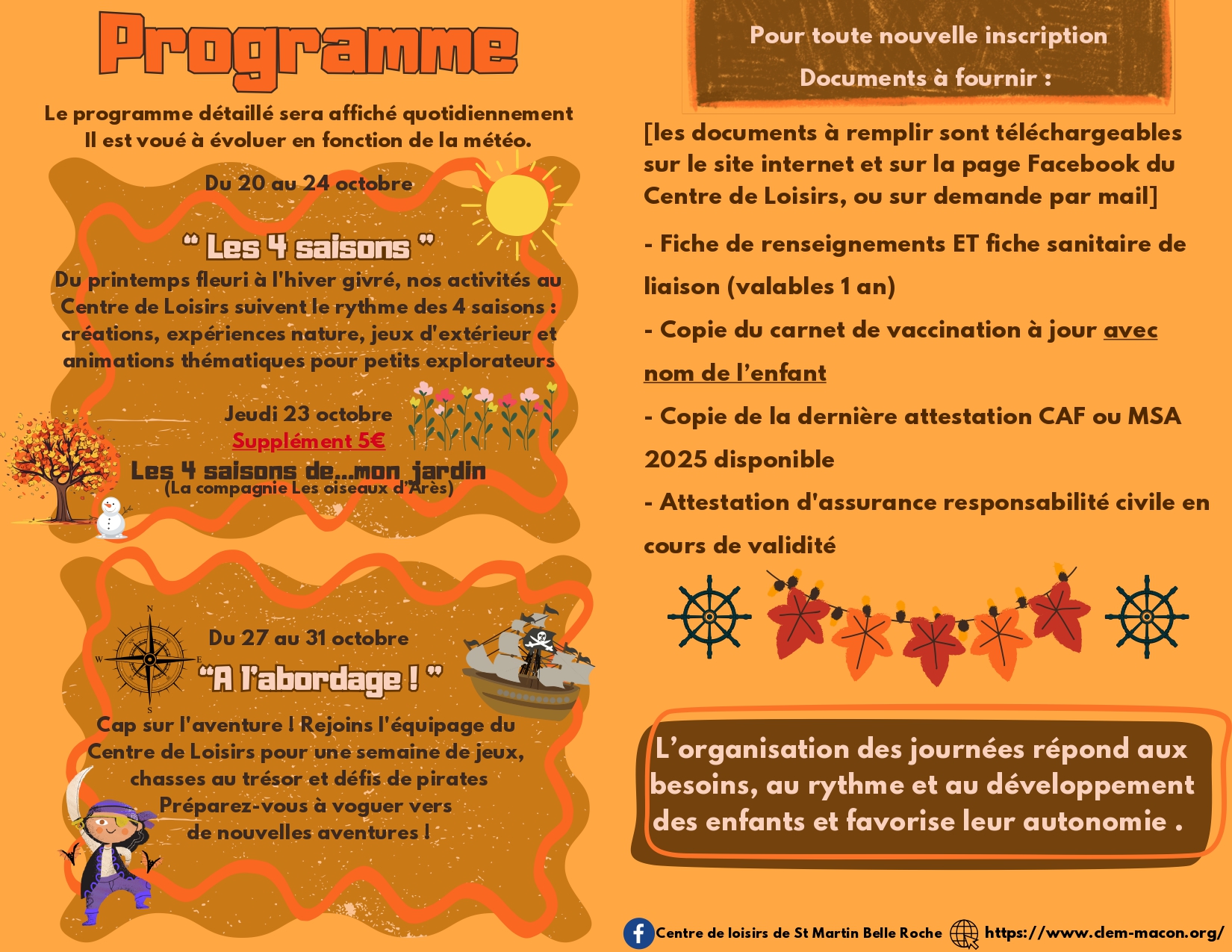- du 20 au 31 octobre(deux semaines de vacances d'automne)