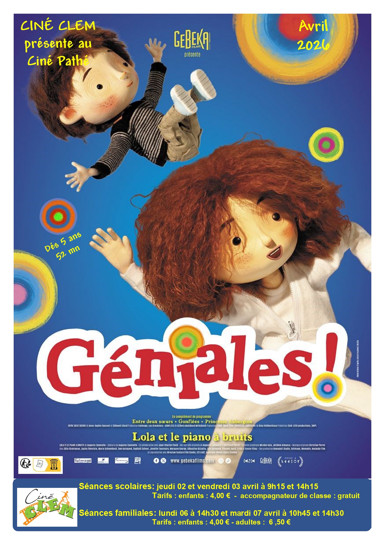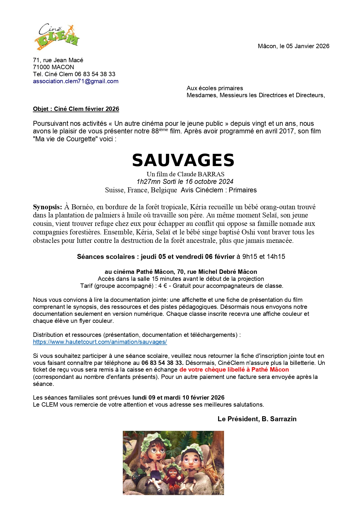 Projections de séances cinématographiques éducatives, documentées, destinées aux écoles et aux familles (4 projections par an)